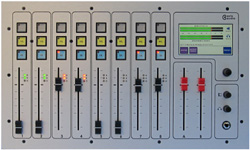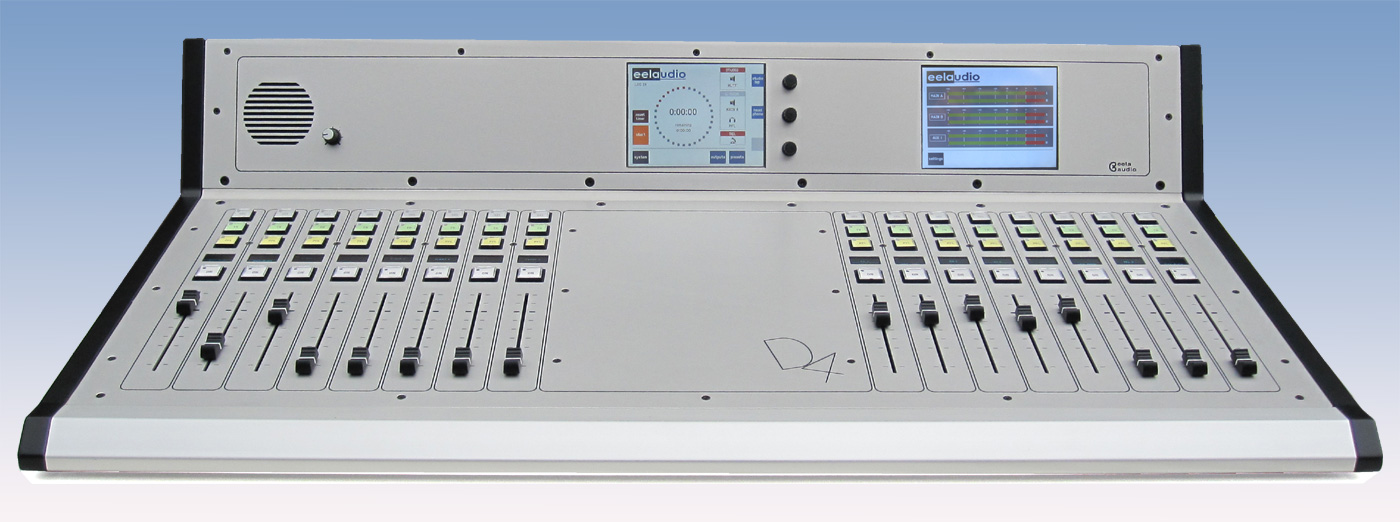 D4 professional all digital "on-air" mixing console with 16 input faders, 32 stereo inputs and 16 outputs in total for up to 10 cleanfeeds.